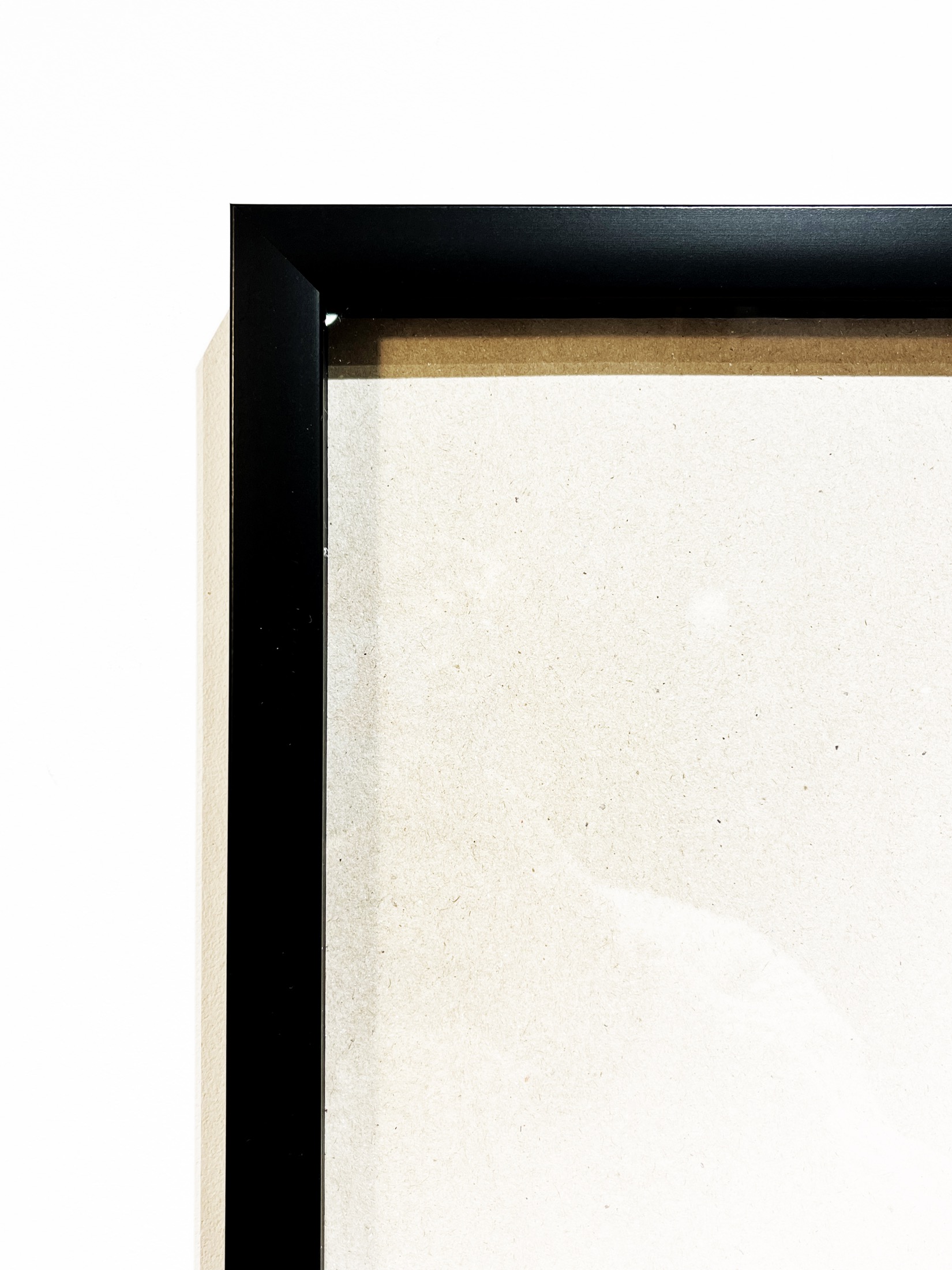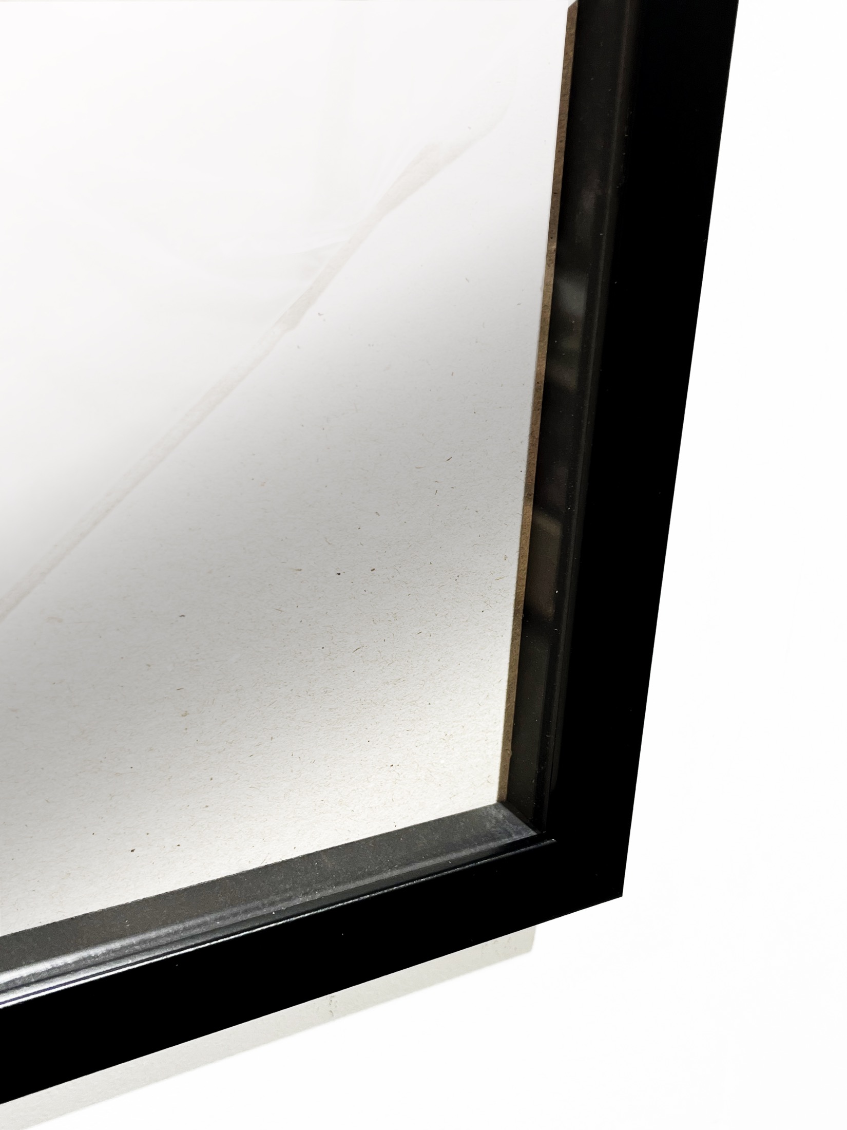 Рама из пластикового профиля, черная, с отступом 1 см внутри рамы (аквариум). Вместо стекла в рамах стоит оптический пластик 0,3 см, с отличной прозрачностью, что также позволяет сделать раму легче по весу. Задник рамы изготовлен из плотного картона.