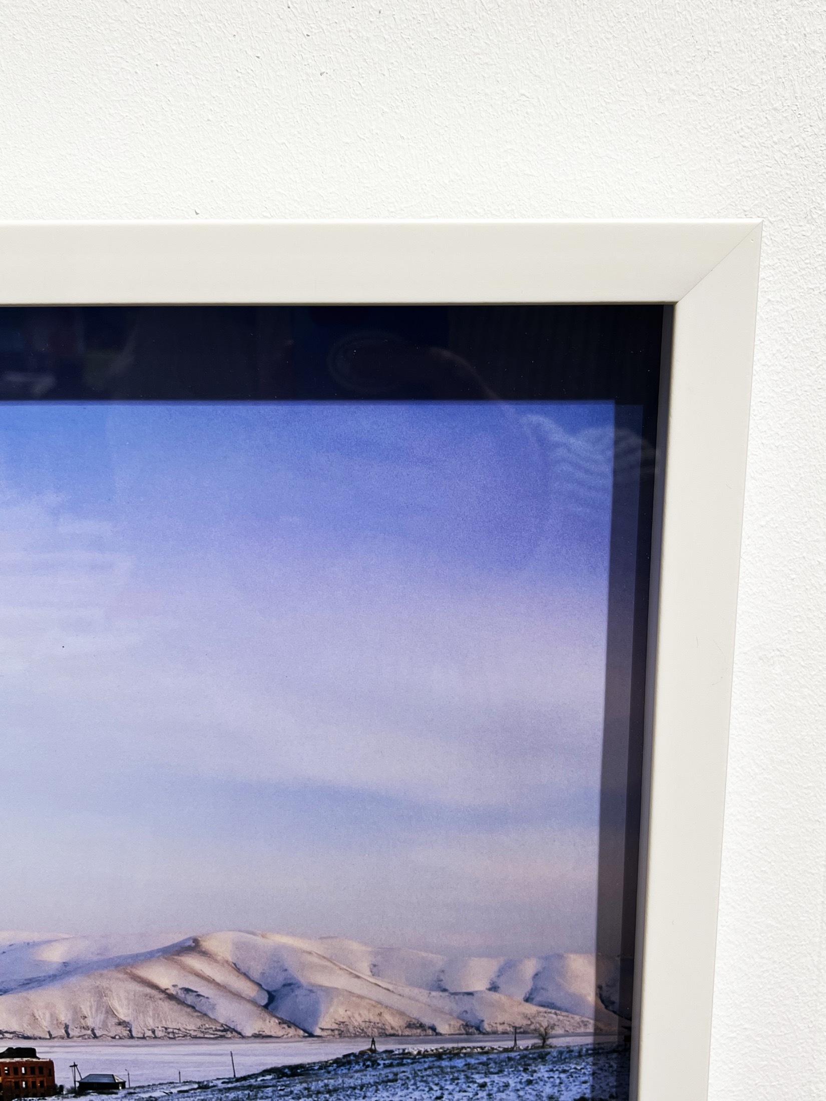 Рама из пластикового профиля, белая, с отступом 1 см внутри рамы (аквариум). Вместо стекла в рамах стоит оптический пластик 0,3 см, с отличной прозрачностью, что также позволяет сделать раму легче по весу. Задник рамы изготовлен из плотного картона.