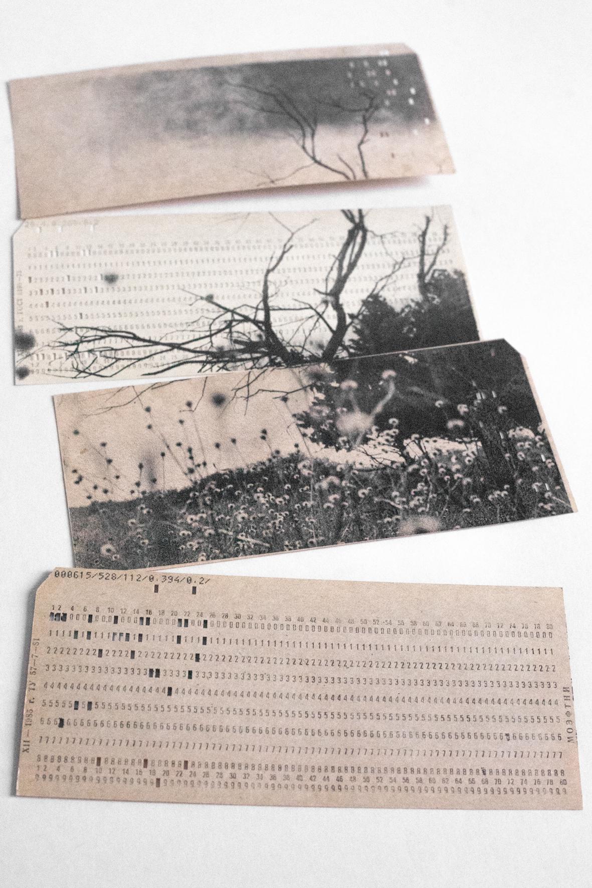 Материал: Набор из 4 перфокарт с неизвестной компьютерной программой, использовавшейся в Университете города Астрахань в 1980-ые гг.